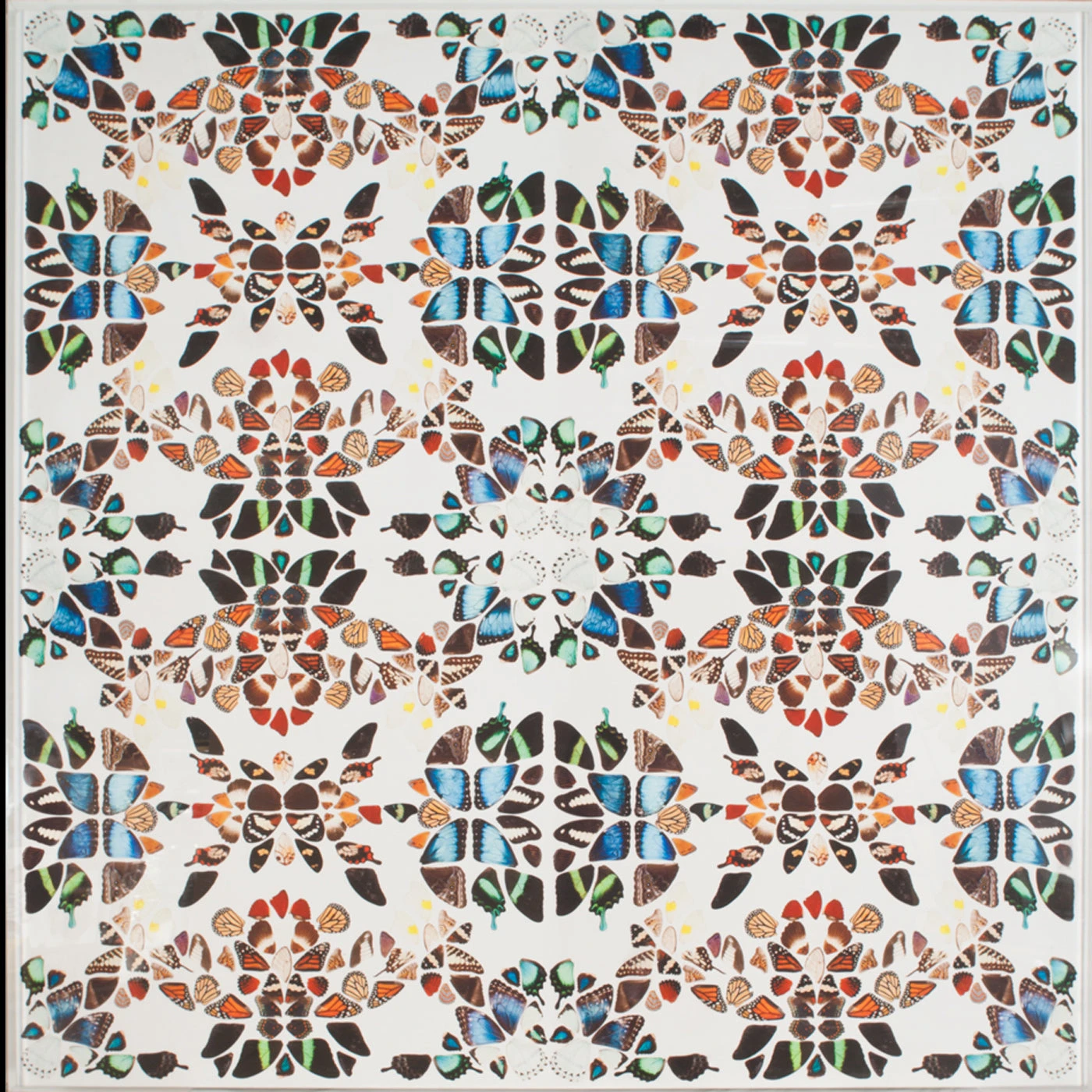 Damaged butterfly wings are re-purposed allowing their singular beauty. Printed on archival paper, then adhered to a white painted wooden board. Each board is handcrafted and framed in 2.5″ deep acrylic.