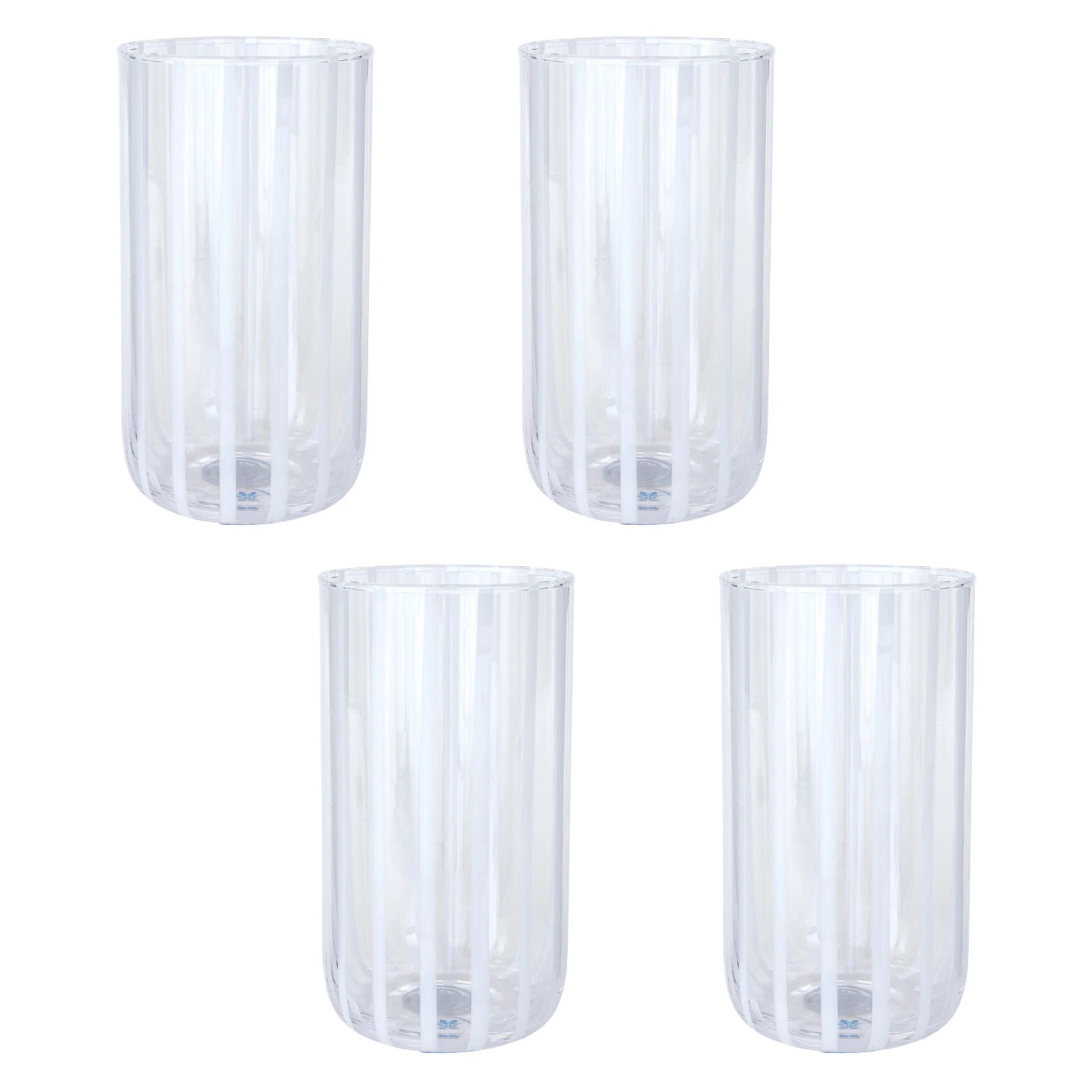 Set includes four (4) Cabana Highball Glasses in your choice of white or blue stripes.