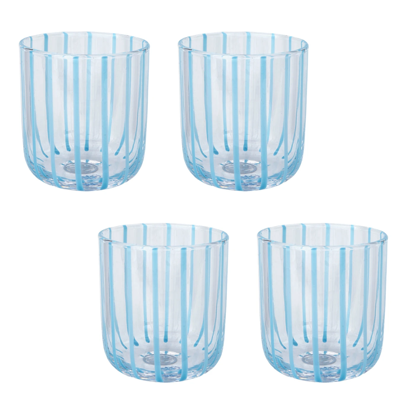 Set includes four (4) Cabana Rocks Glasses in your choice of white or blue stripes.