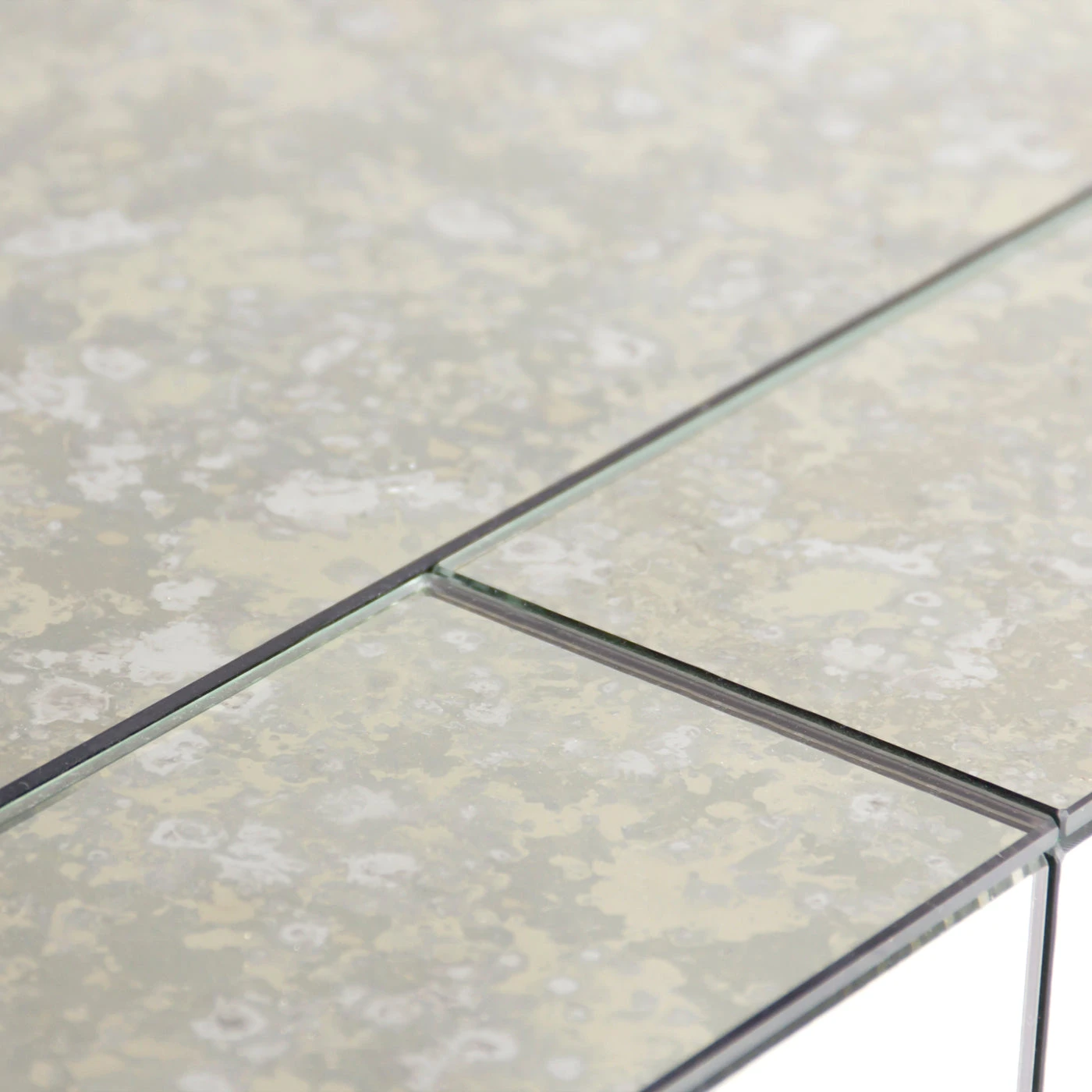 Minimalist forms meet Maximalist glamour. Antiqued mirror with a polished brass base. Our Delphine Desk features a single center drawer finished with bright robin’s egg blue lacquer.