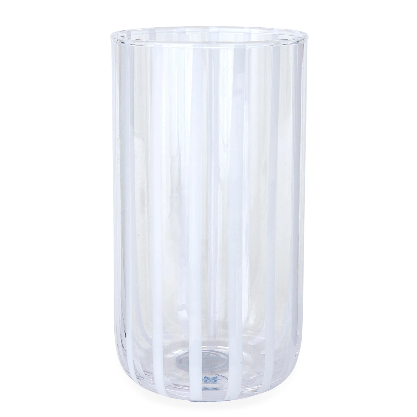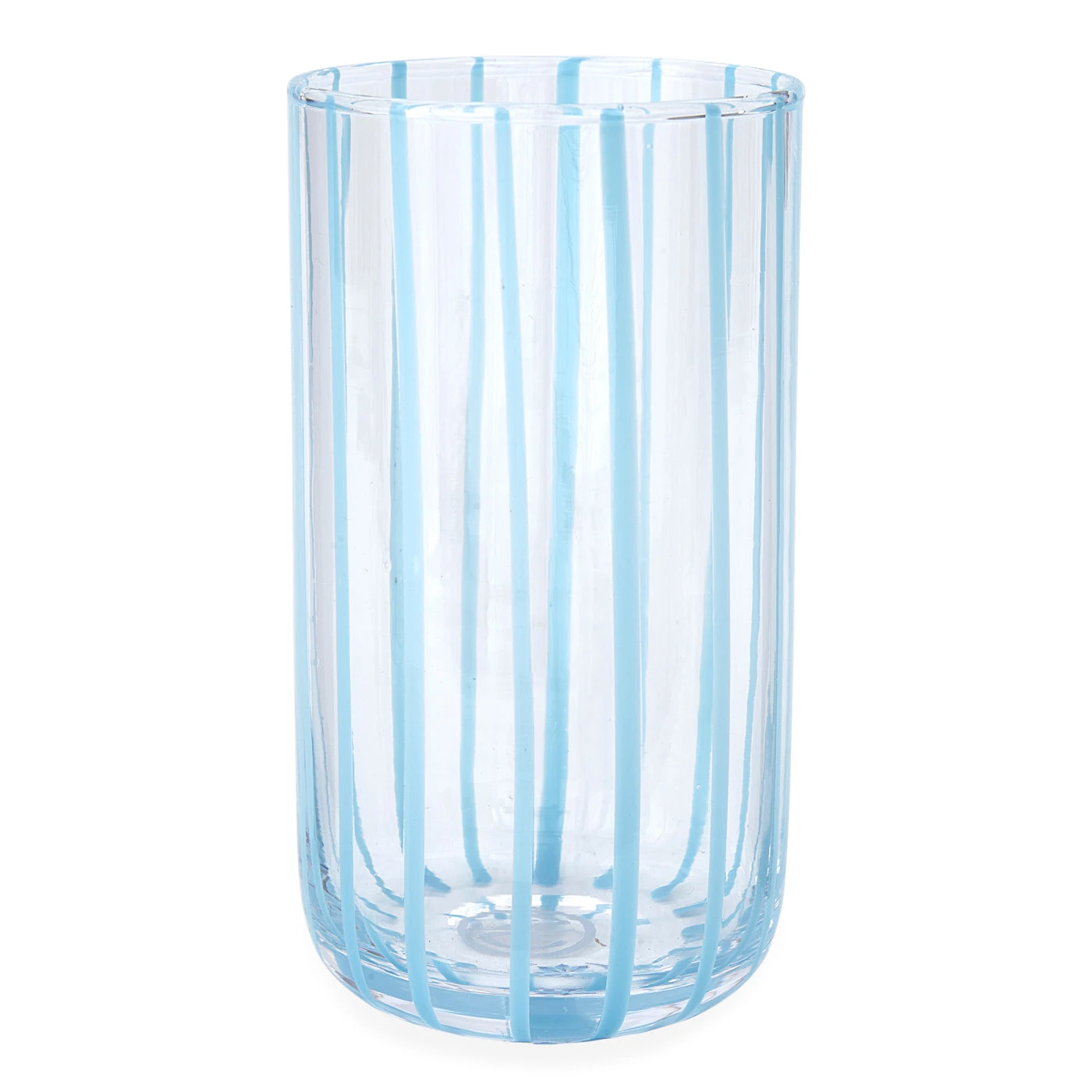 Give your next sips sesh a refresh. Our hand blown Cabana glassware features a ring of vertical stripes in either fresh white or pale blue—perfect for mixing and matching. Pair with our Cabana Glass Pitcher for coordinated cool.