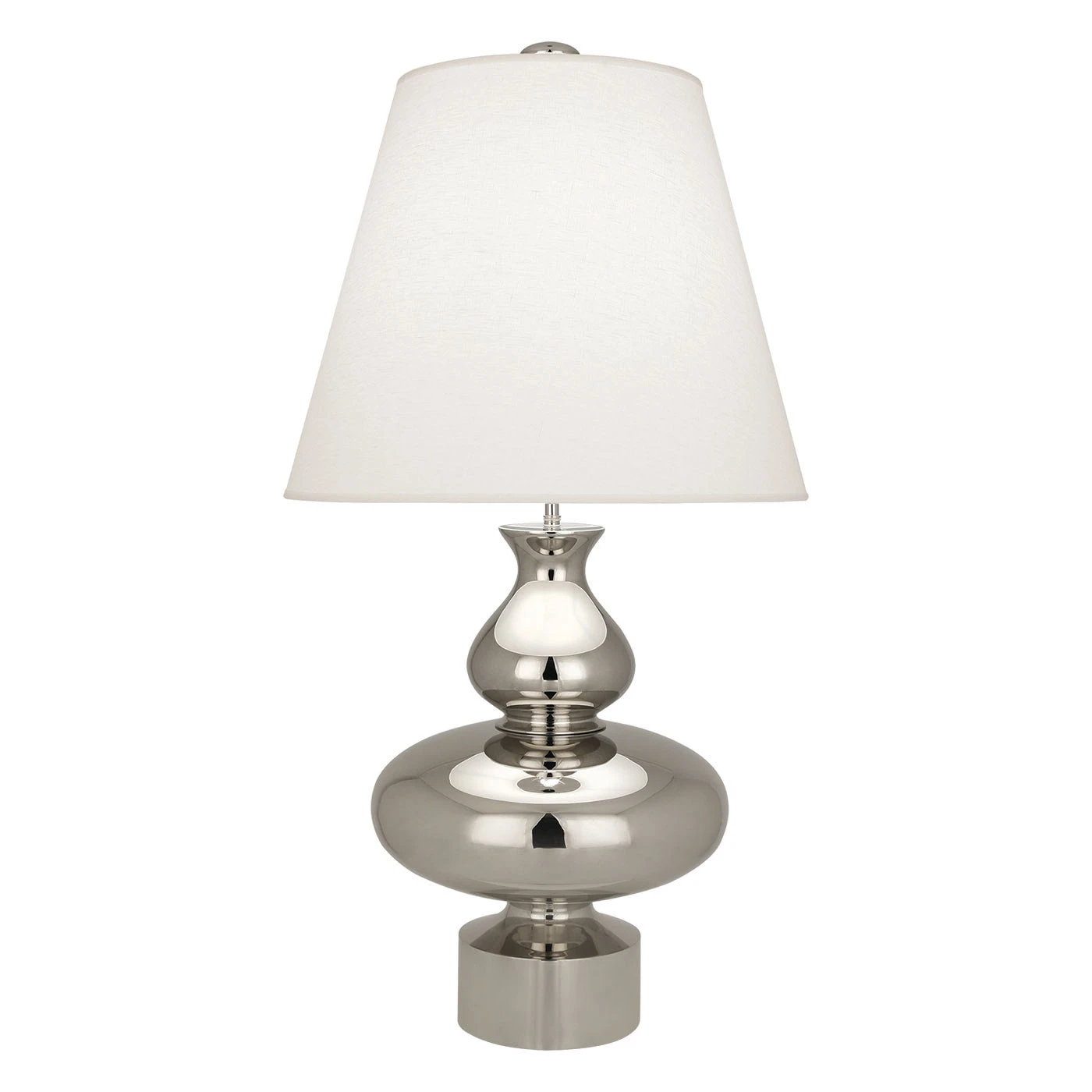 A twinkly update on one of our signature silhouettes. Our Hollywood Bel Air Table Lamp revives a favorite curvaceous form with your choice of highly reflective finishes—timeless brass or glamorous nickel. Topped with a tall, tapered oyster linen shade, this sparkly star lights up any tabletop.