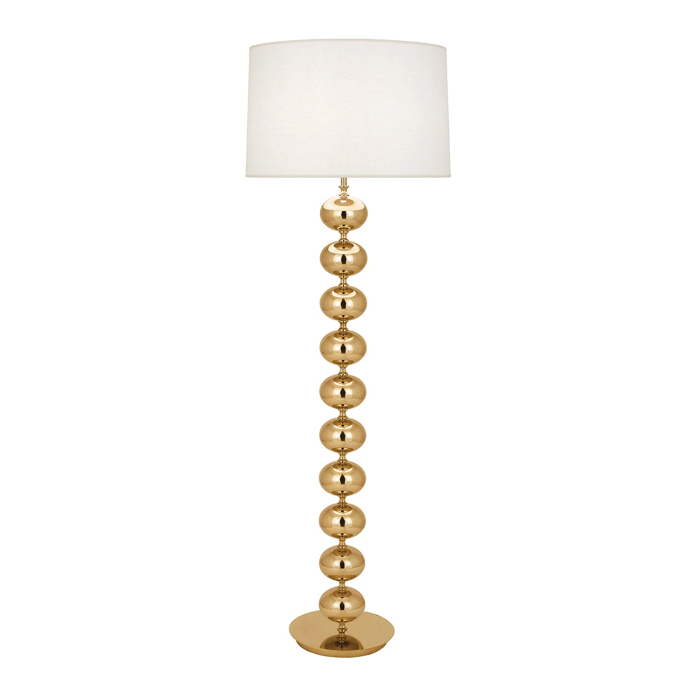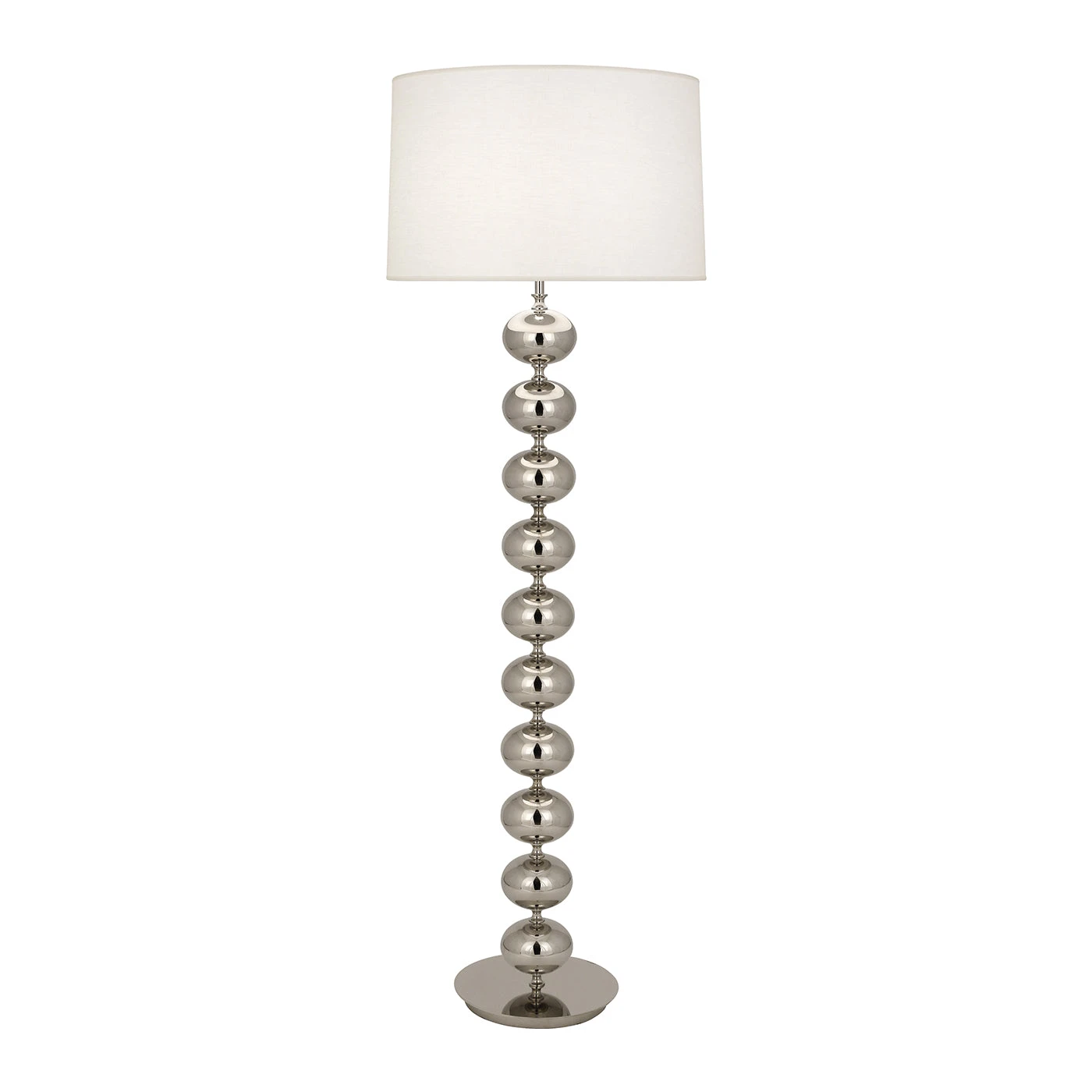 Tall and twinkly, our Hollywood Floor Lamp features a chic stack of orbs in your choice of highly reflective finishes—timeless brass or glamorous nickel. Topped with an oyster linen shade, this sparkly star lights up any room.