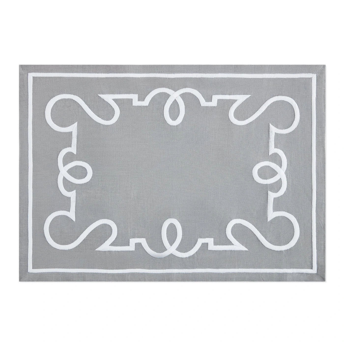Elevate classic grey and white with a thick, raised satin stitch embroidery. Perfect picks for punctuating a preppy tablescape, they also feel fresh paired with boldly colored dinnerware. Pair with our Maxime napkins for a coordinated look.