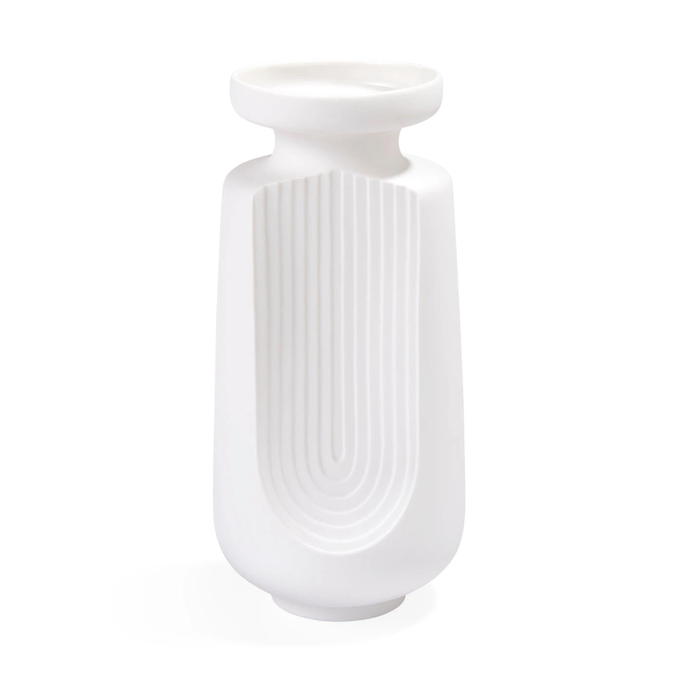 Modern and elemental, timeless and elegant. Each of our Arco vases features a unique stepped tunnel relief crafted from unglazed porcelain. Soft, rounded silhouettes balance their texture and dimension. Instantly iconic vessels that feel architectural in your Soho loft and posh in your Malibu bungalow.