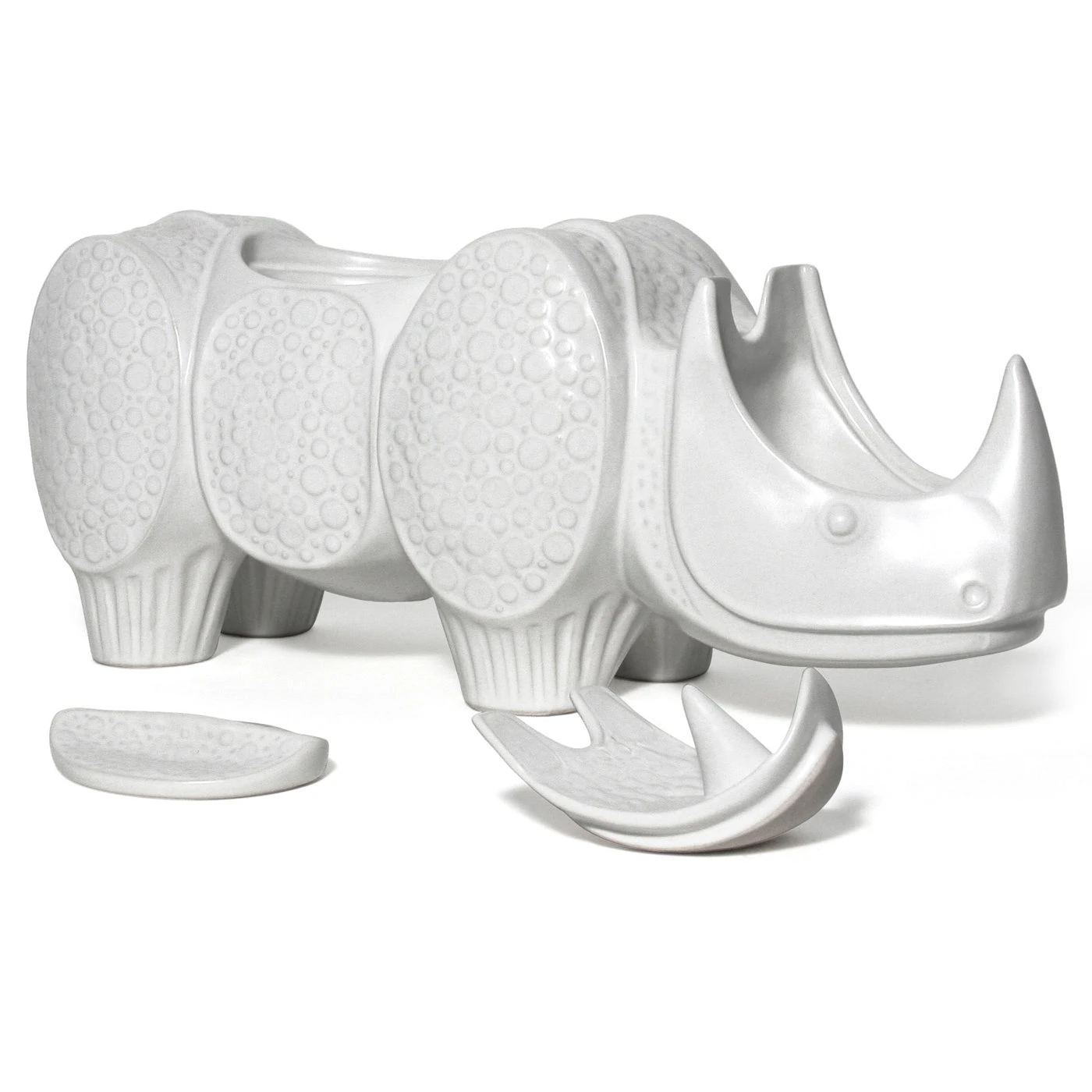 Elemental forms with subtle layers of pattern and decoration, finished with a soft satin matte glaze. One adds a touch of couture craft, or group the collection to create modern menagerie magic.