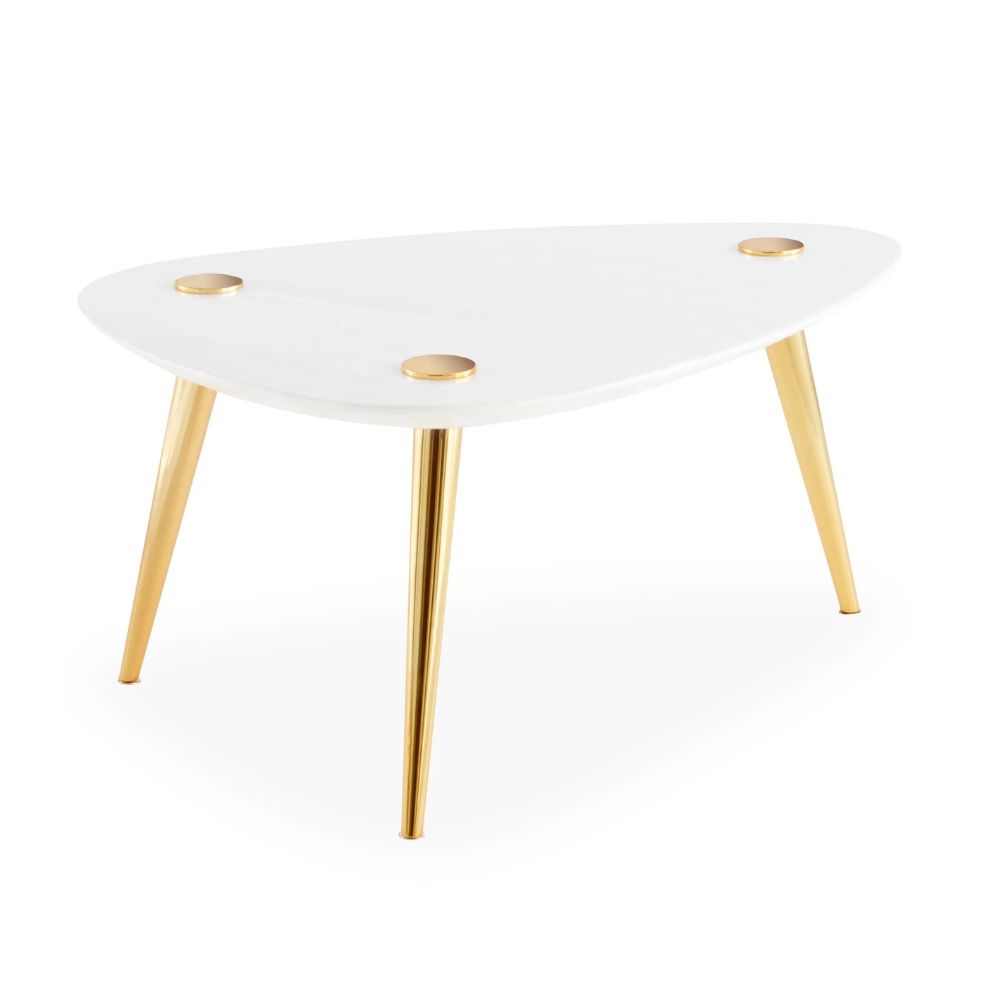 Curved black or white marble tabletops on polished brass legs, our triangle tables are chic classics that complement both minimalist and maximalist styles. Dynamic on their own, as a duo they’re designed to mingle—tuck the small table neatly beneath the large version to create new shapes.