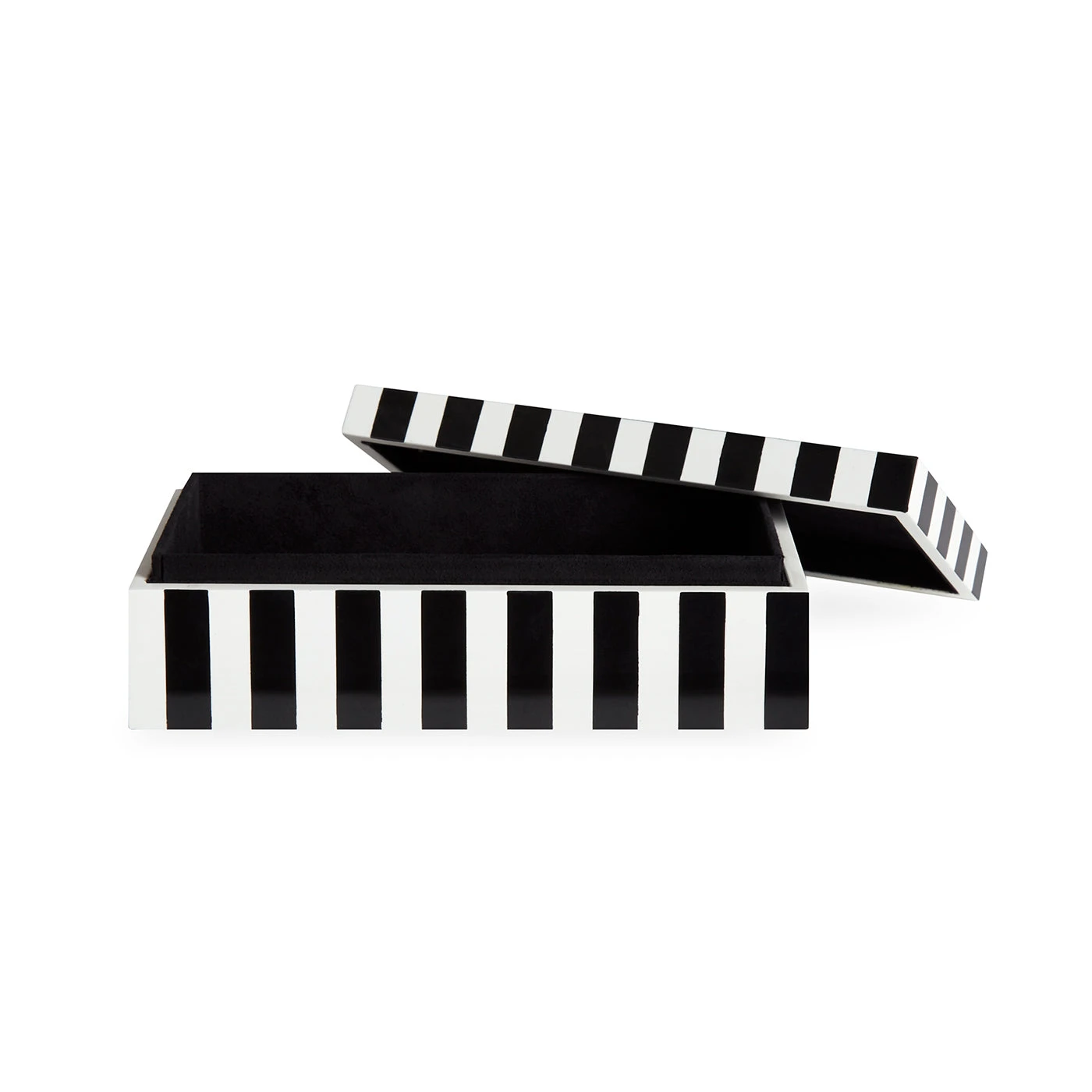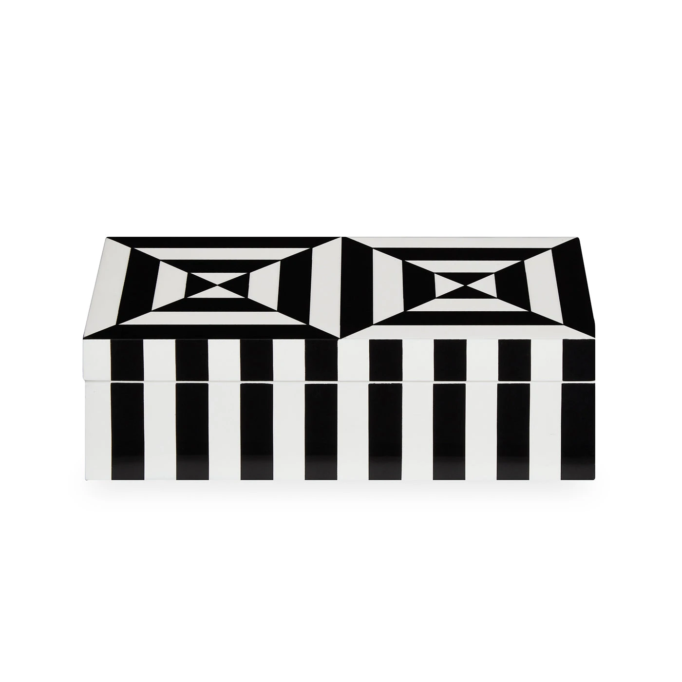 Mind-bending, hand-finished patterns in glam and glossy, high-contrast lacquer—our Op Art Lacquer Boxes POP. Keep your possessions handy but hidden while you luxe up your shelf, mantel, or tablescape. Available in three sizes for stashing, stacking, or making a stand-alone statement.