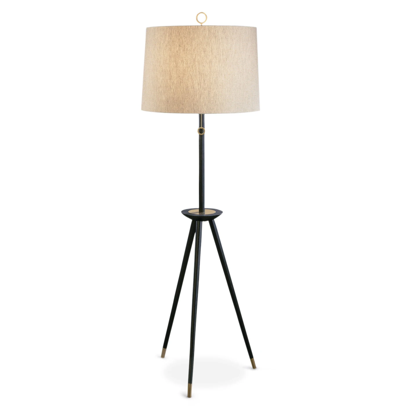 Elegant and ladylike in ivory wood with polished nickel accents or timelessly handsome in ebonized wood with antiqued brass or polished nickel accents. Topped with a natural linen shade.